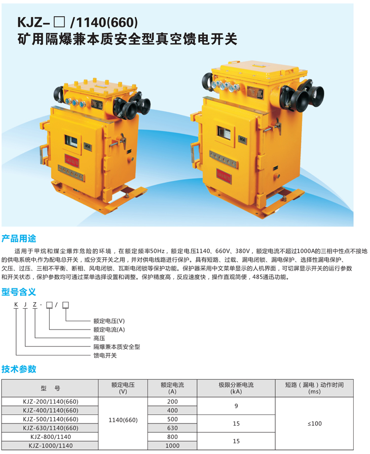 KJZ-口/1140(660)礦用隔爆兼本質安全型真空饋電開關