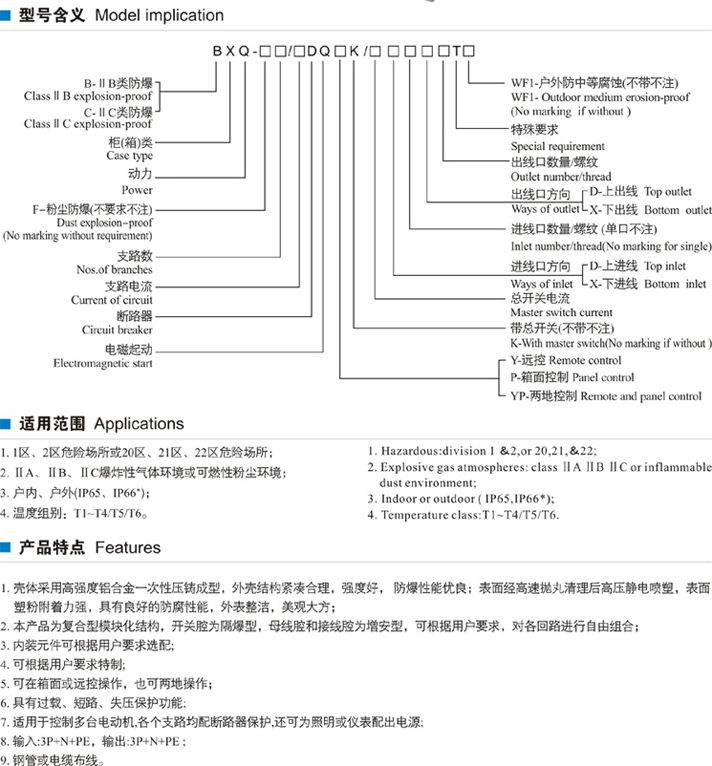 BXQ68系列防爆動(dòng)力(電磁起動(dòng))配電箱